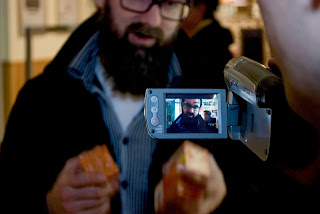 Det begynner å bli en stund siden jeg var i Kristiansand, men det finnes fortsatt godbiter i arkivet fra turen dit. Her kommer en herlig metablogg om å bli fotografert og filmet samtidig, og noen refleksjoner om behovet for å handle enda mer tape når man blogger om å dra og handle tape.
