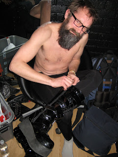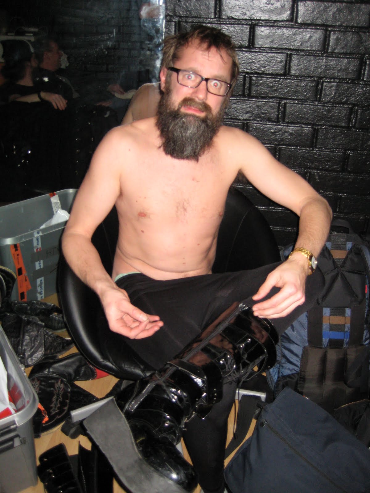 Entusiasmen for mitt nytt kostyme har sunket noe etter at det ble klart at glidelåsen på den ene skoen har gått i vranglås og at jeg dermed ikke bare er nødt til å gjennomføre samtlige av kveldens fire konserter (Bare Egil Band, Black Debbath, Hurra Torpedo og Gartnerlosjen) i bøgekostyme, men at jeg er fanget i denne soperdrakta for resten av mitt liv! (Eller til noen klarer å finne en måte få denne gjenstridige glidelåsen ned på!) Følg med på den spennende fortsettelsen her på http://bareegilblogg.no!